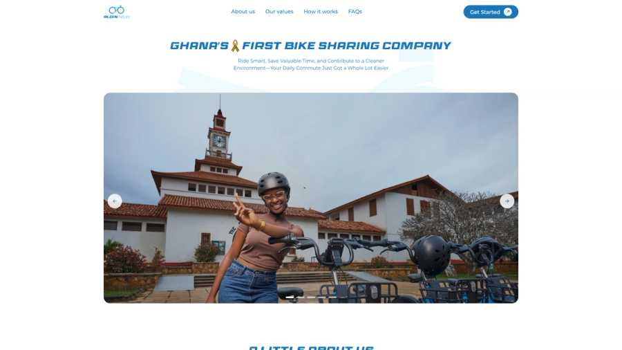 Designed and developed a minimal yet elegant landing page and CMS for Ghana's first bike-sharing company, featuring rich product images and simple, straightforward instructions for using the bikes.