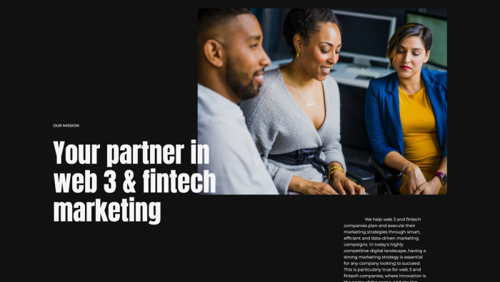 The client needed a professional digital hub to showcase their marketing campaigns and establish a solid footprint in the Web3, crypto, and fintech sectors. While they were active in these fast-moving industries, they lacked a central platform that could handle two distinct needs: acting as a high-end portfolio for their past work and serving as an educational hub for the public.