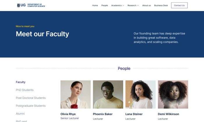 The original Computer Science department website was slow, outdated, and missing a lot of the key info that students and faculty actually needed. It was hard to navigate and didn't look the part, so I was brought in to build a polished redesign that made everything easier to find and much faster to use.